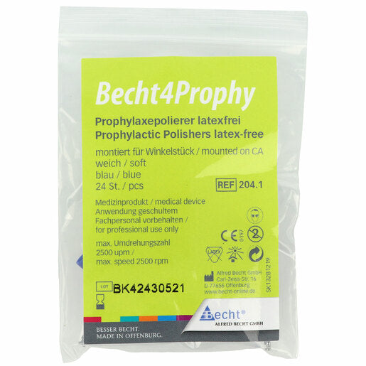 A Becht desenvolve e produz produtos médicos com o selo de aprovação "Qualidade Médica Alemã" nas áreas de produtos de higiene, desinfecção e limpeza, profilaxia, endodontia, vidro transparente OPAL e papel de articulação .