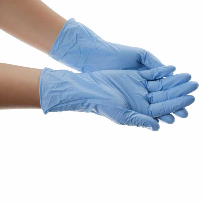 - Luva descartável em nitrilo azul,