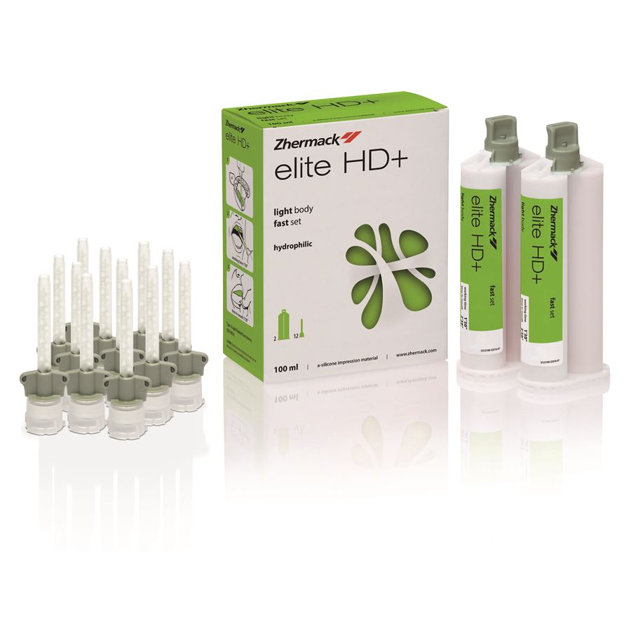 Silicone de adição hidrocompatível de baixa viscosidade. Consistência Light. Próteses fixas. Fluido para a dupla moldagem. Cor verde.